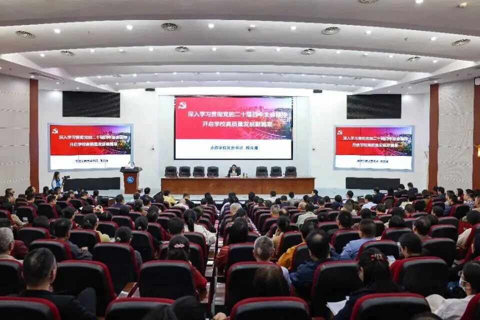 陈文海强调,精准把握全会的核心要义,就要以“六个坚持”为引领,将学校高质量发展推向新高度。一是坚持和加强党的全面领导,为事业发展提供坚强政治保证;二是坚持以高质量发展为首要任务,筑牢科教兴校的战略根基;三是坚持全面深化改革,持续激发办学活力和创新动力;四是坚持推进治理能力现代化,将制度优势转化为治理效能;五是坚持以人民为中心的发展思想,在高质量发展中促进师生共同成长;六是坚持统筹发展和安全,构筑坚实可靠的校园安全屏障。