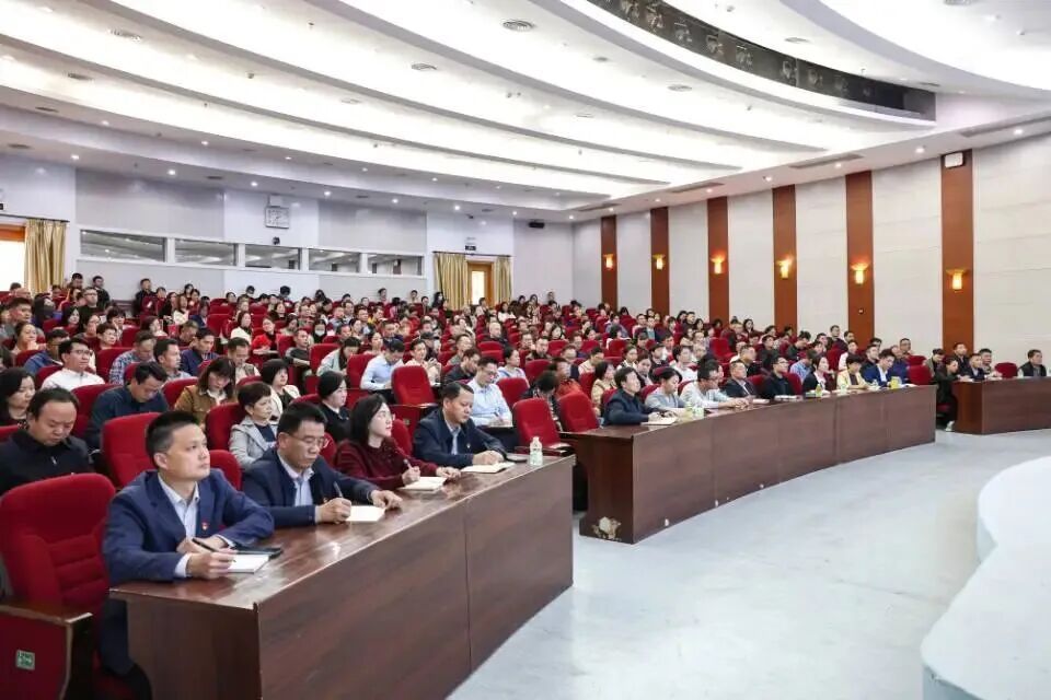 为深入学习贯彻党的二十届四中全会精神,推动全会精神在学校落地生根、开花结果,12月10日下午,学校党委书记陈文海在国际会议中心作题为《深入学习贯彻党的二十届四中全会精神,开启学校高质量发展新篇章》的专题宣讲报告。报告会由机关党委委员、学校宣传统战部常务副部长罗锐宏主持,机关各党支部党员、干部,马克思主义学院、外国语学院党员、教师代表共260余人参加了学习。