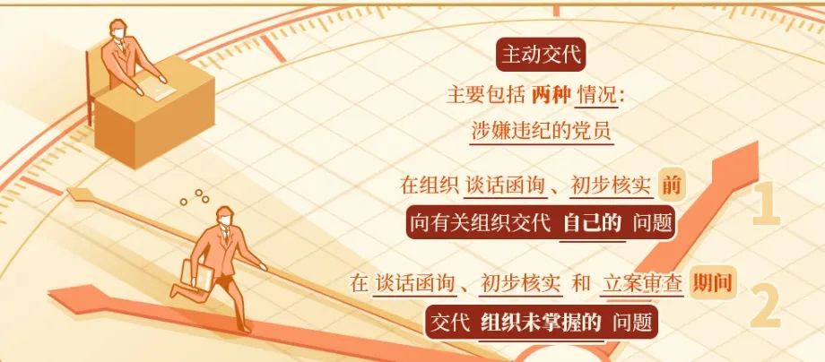 一是涉嫌违纪的党员在组织谈话函询、初步核实前向有关组织交代自己的问题。在组织谈话函询、初步核实前向有关组织交代自己的问题,包括主动交代组织已经掌握的问题,也包括交代组织尚未掌握的问题。